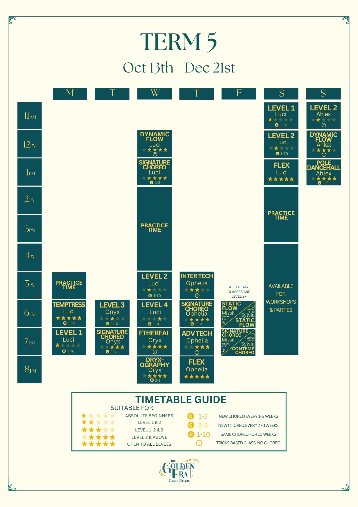 Check out our little gold star guide on the timetable, this will help you not only work out what class is your level but also which classes have choreo and how often they change routines, and which classes have no choreo at all.